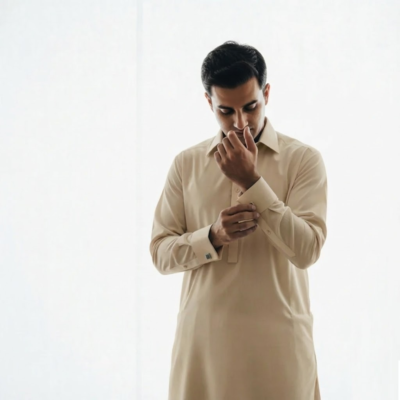 Playdium organic cotton fabric is engineered specifically for traditional shalwar kameez tailoring. This premium, certified organic cotton combines natural breathability with a refined drape that flatters the classic silhouette